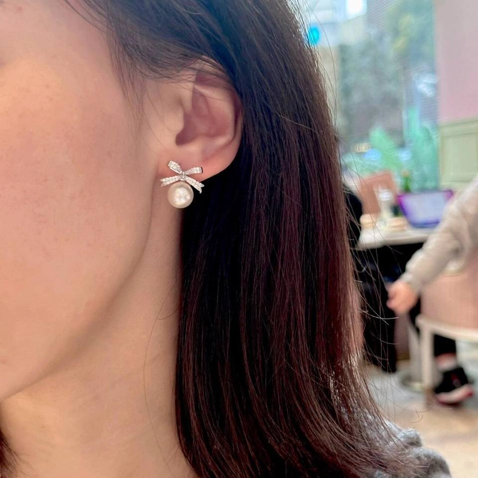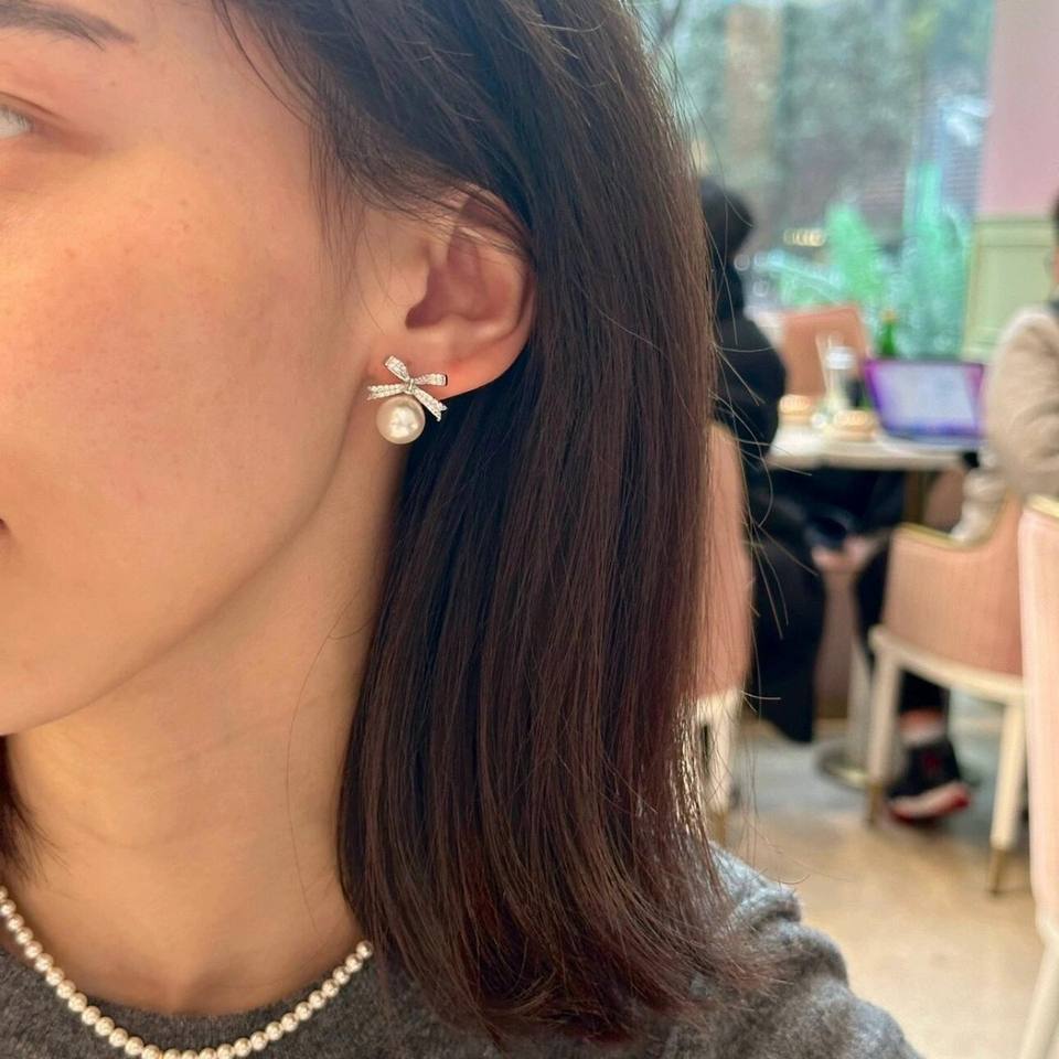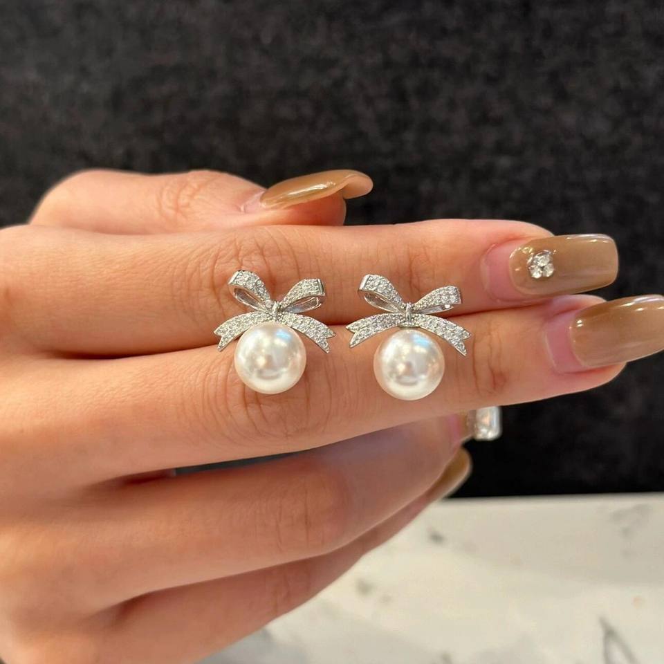 S925 Sterling Silver Bow Zircon Pearl Earrings Niche French Luxury Design Retro Elegant for Women