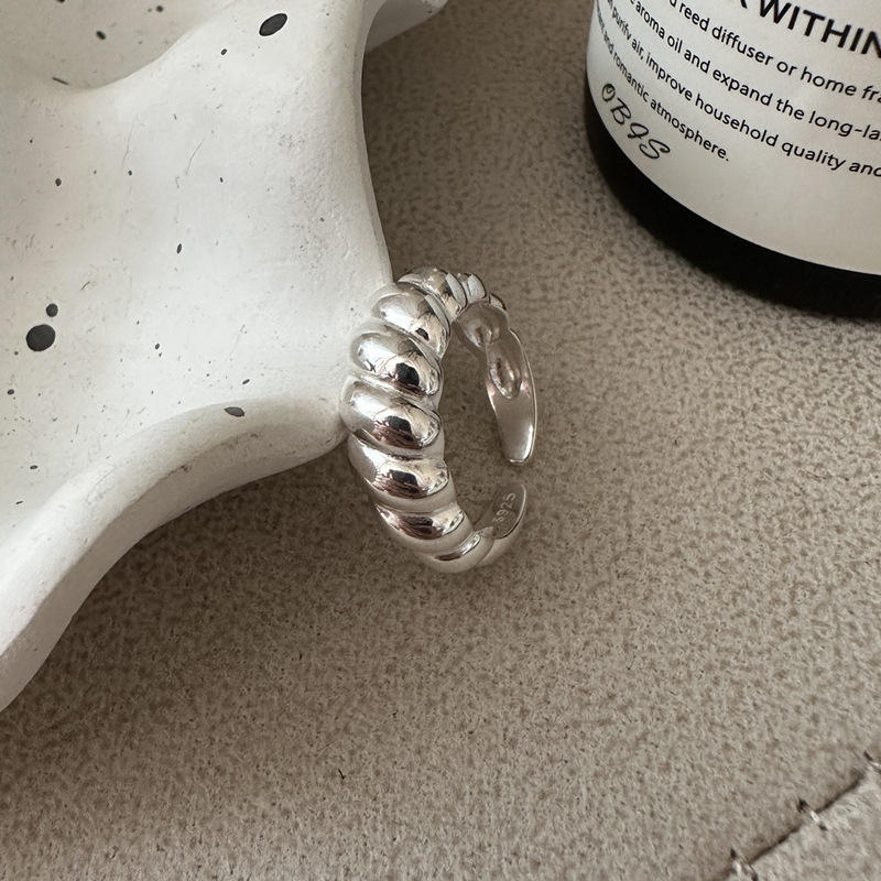 S925 Sterling Silver Classic Personality Ring Geometric Korean Version Niche Design Croissant Bag Fashion Simple Retro Style