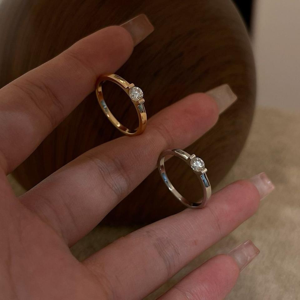 S925 Sterling Silver Classic Single Diamond Suspended U-Diamond Smooth Ring Dainty Cut/Cab Stone Simple Luxury Light Temperament