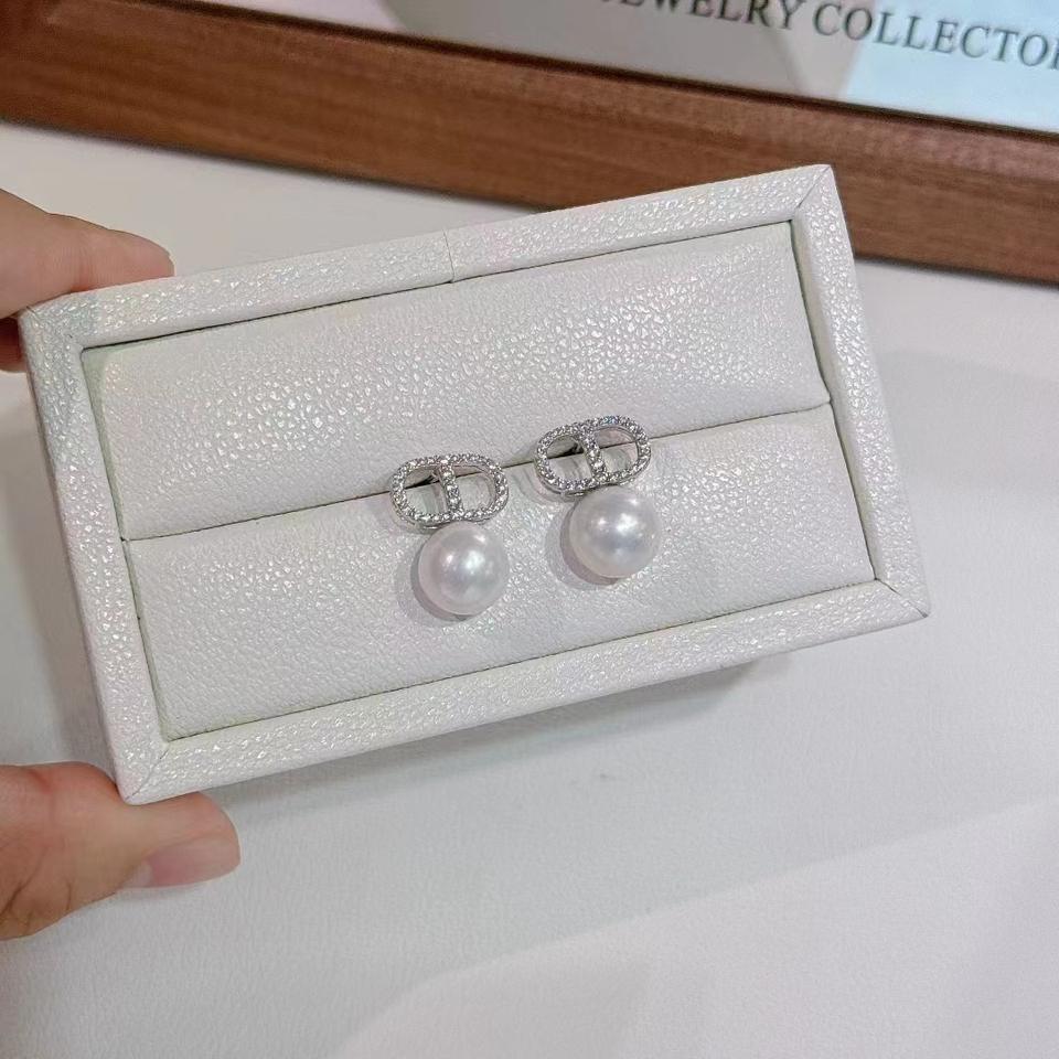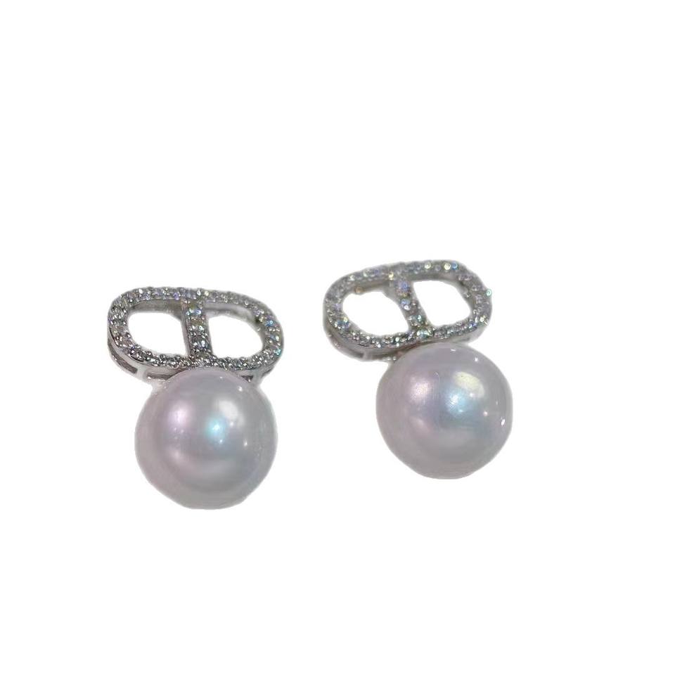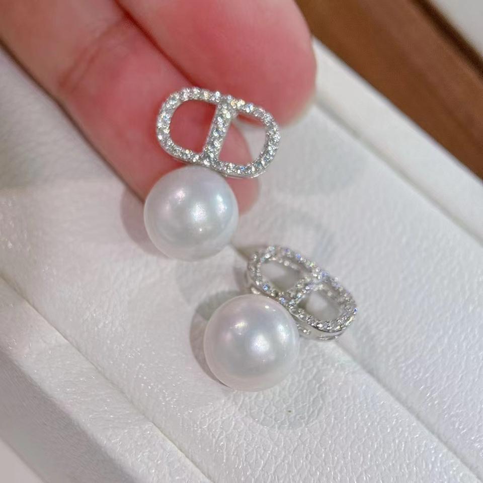 S925 Sterling Silver Classic Three Diamond Earrings with 10-11mm Freshwater Edison Pearls for Women
