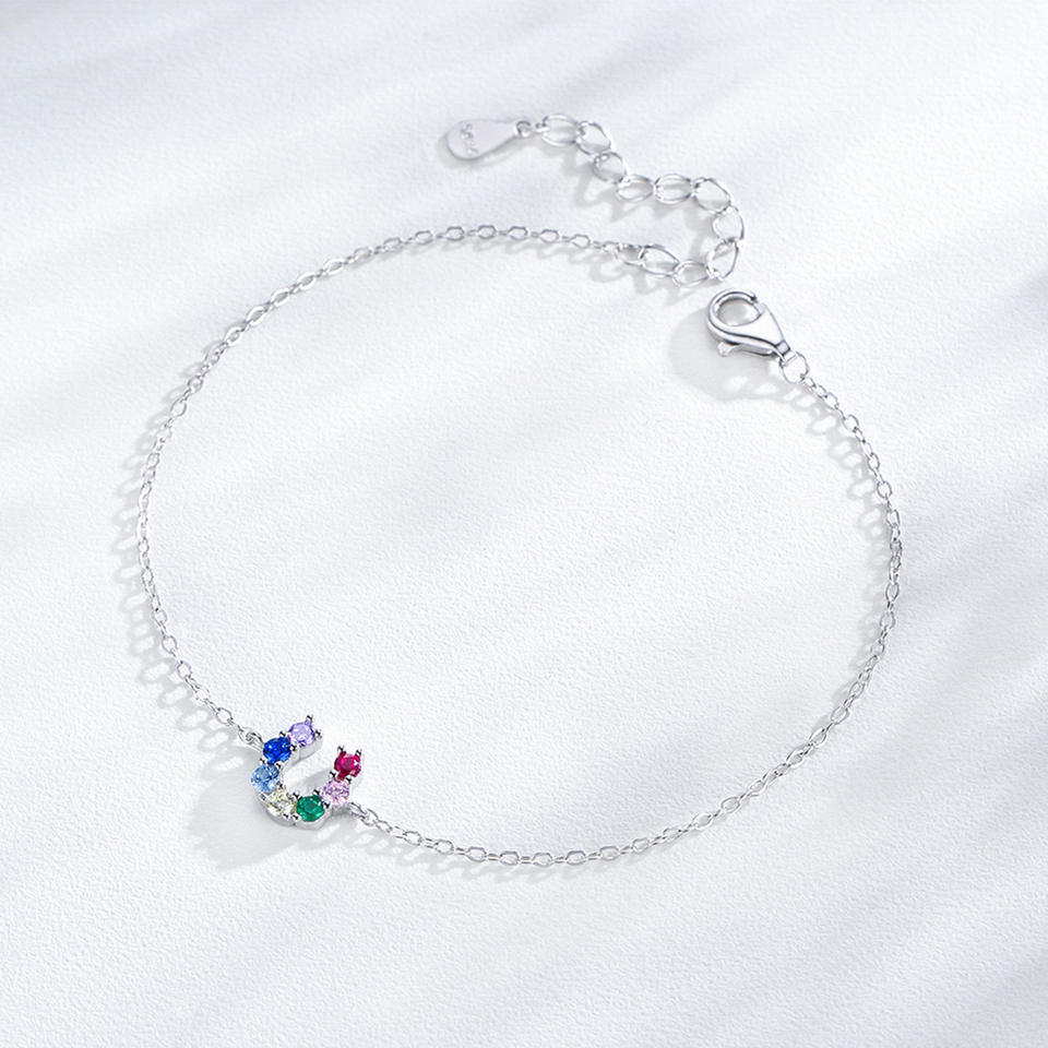 S925 Sterling Silver Colored Zircon Letter UShaped Horseshoe Chain Bracelet forWomens FashionJewelry Customizable copper version