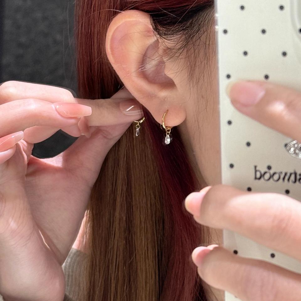 S925 Sterling Silver Dangle Earrings Exquisite Versatile Water Droplet Design with Sparkling Diamond Fashionable and Stylish