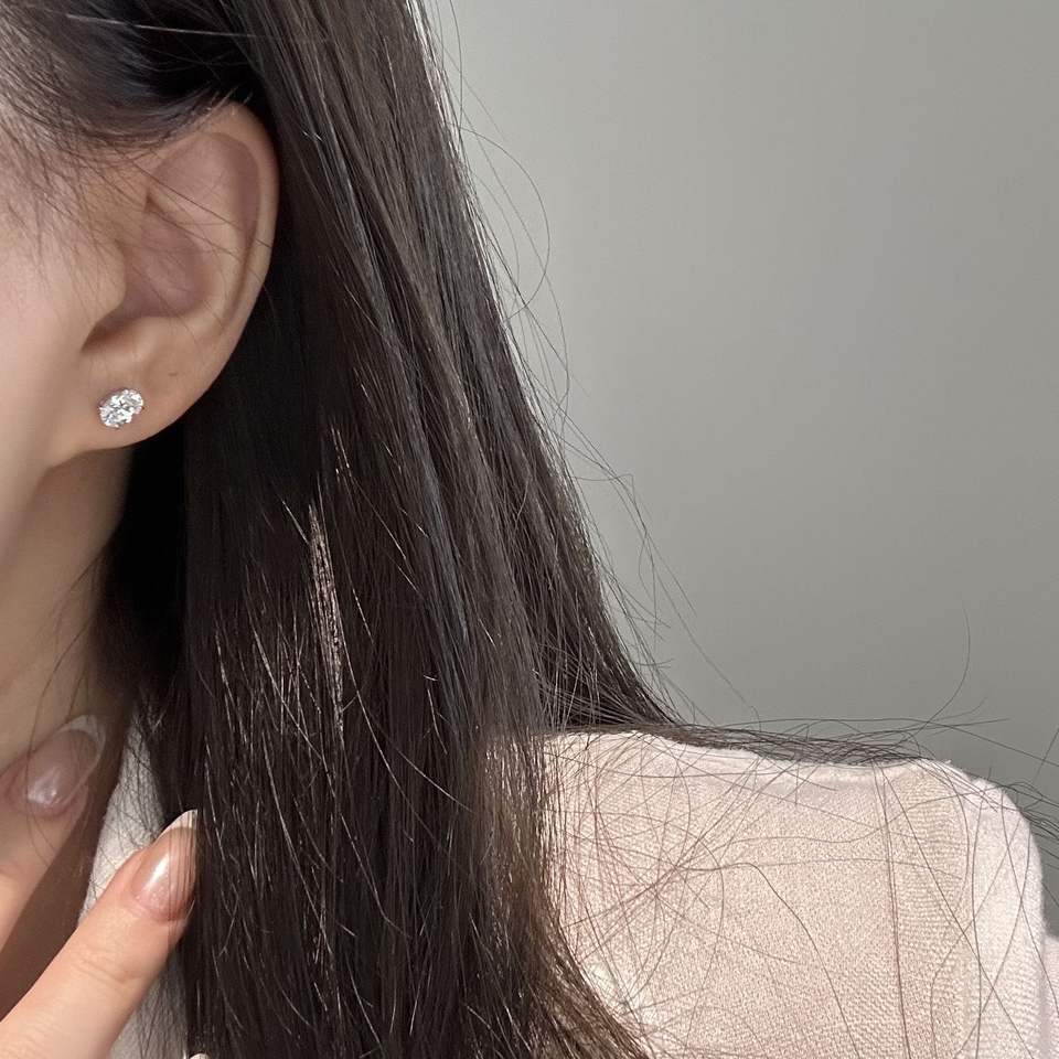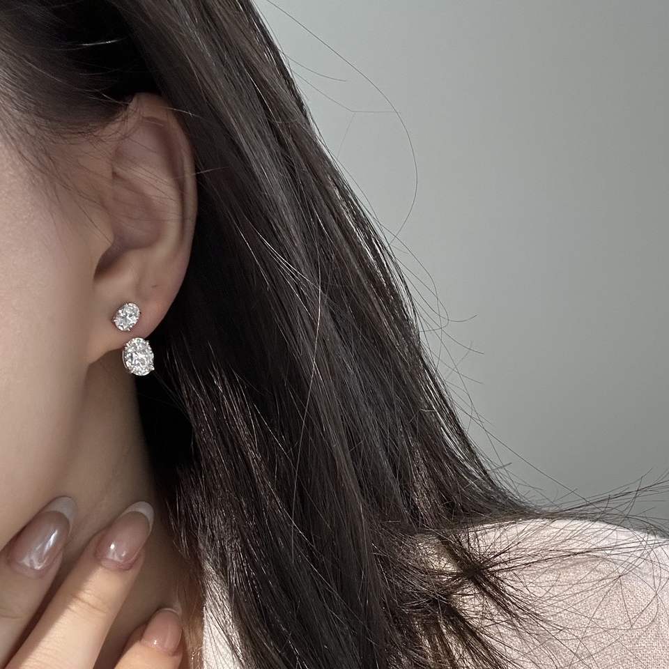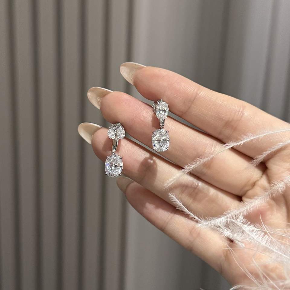 S925 Sterling Silver Fine Dangle Earrings Versatile Rear Hanging Double Stone Oval Diamond Offering Two Wearing Options