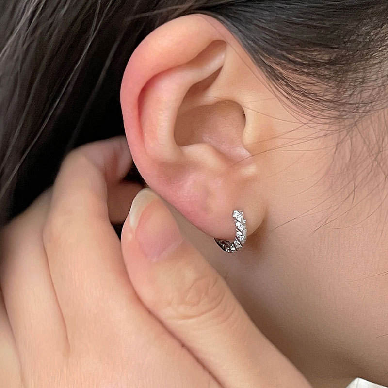 S925 Sterling Silver Fine Stud Earrings Fried Dough Twists Zircon Ear Buckle Small Design Light Luxury Earhole Earrings