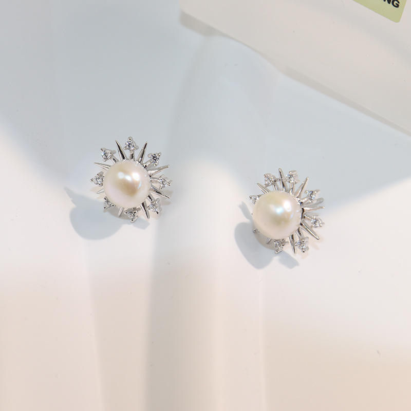 S925 Sterling Silver Freshwater Stud Earrings AAAA Grade Rhodium Plated Shape Purple/White/Pink Classic Style Engagement Wedding