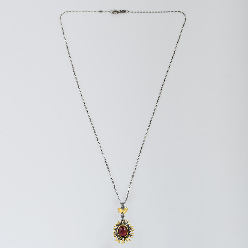 Wholesale 925 Sterling Silver Black Rhodium Plated Chain Necklace Natural Garnet Gemstone Pendant Fine Jewelry for Gift