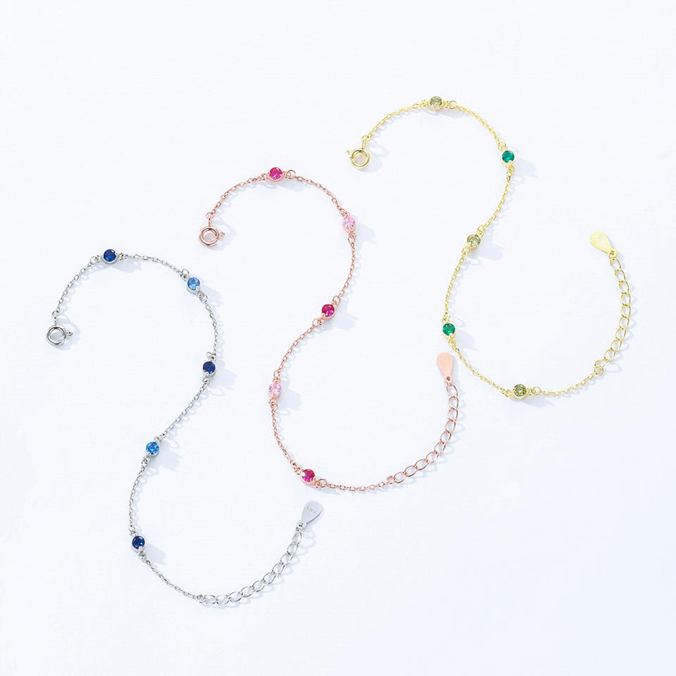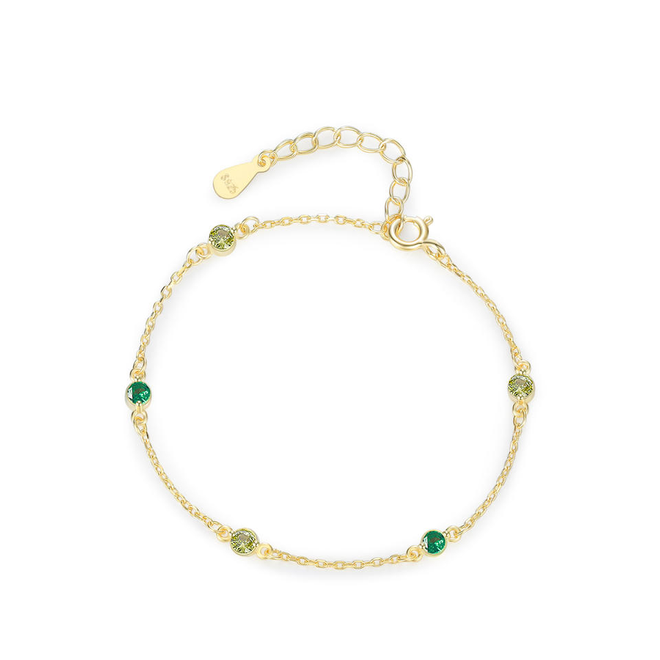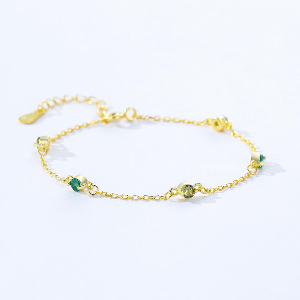S925 Sterling Silver Green Zircon Chain Bracelet for Women - Anniversary Gift Customizable copper version