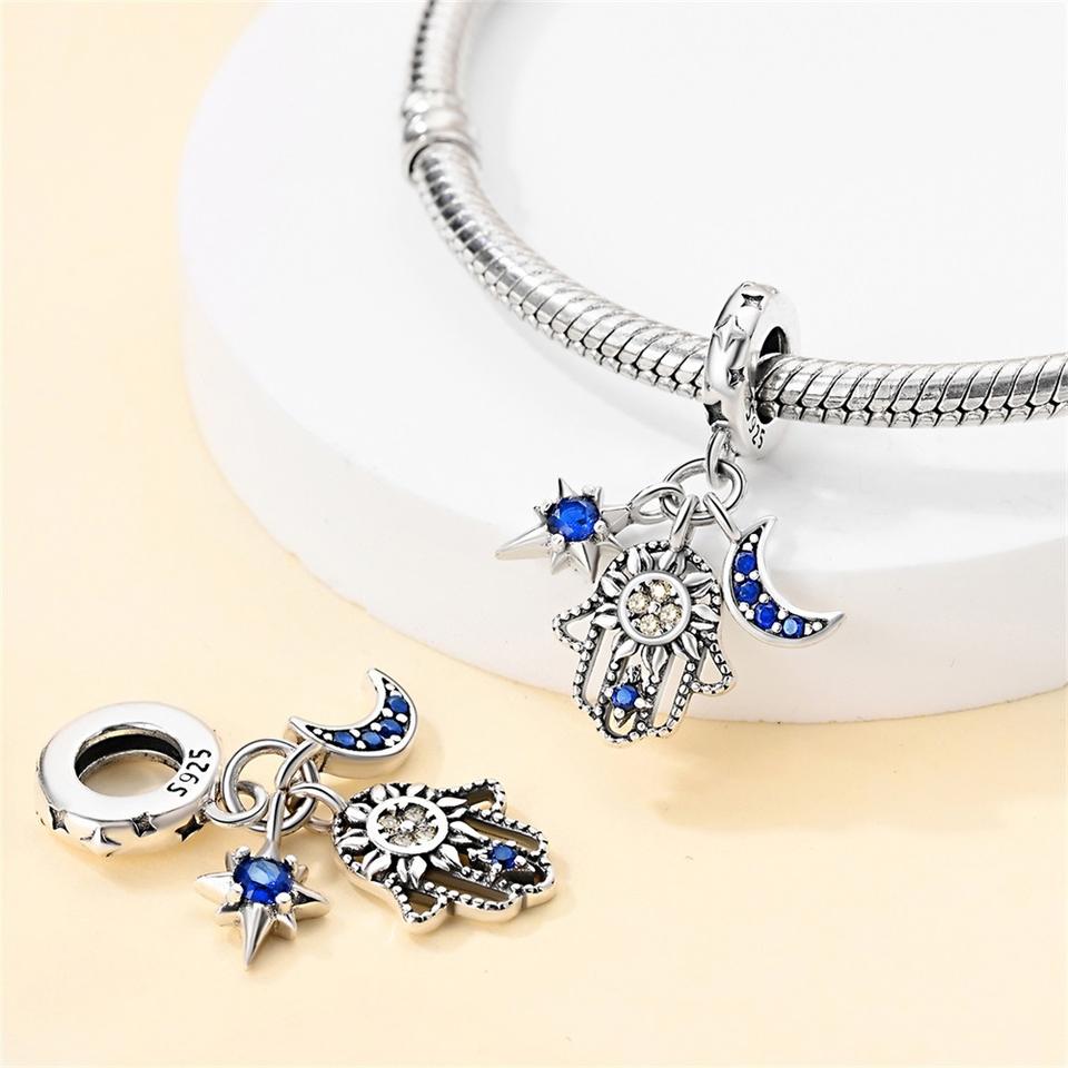 S925 Sterling Silver Hand of Fatima Charm Zircon Lucky Symbol Guardian Angel Cross Pendant DIY Jewelry Necklace Accessories