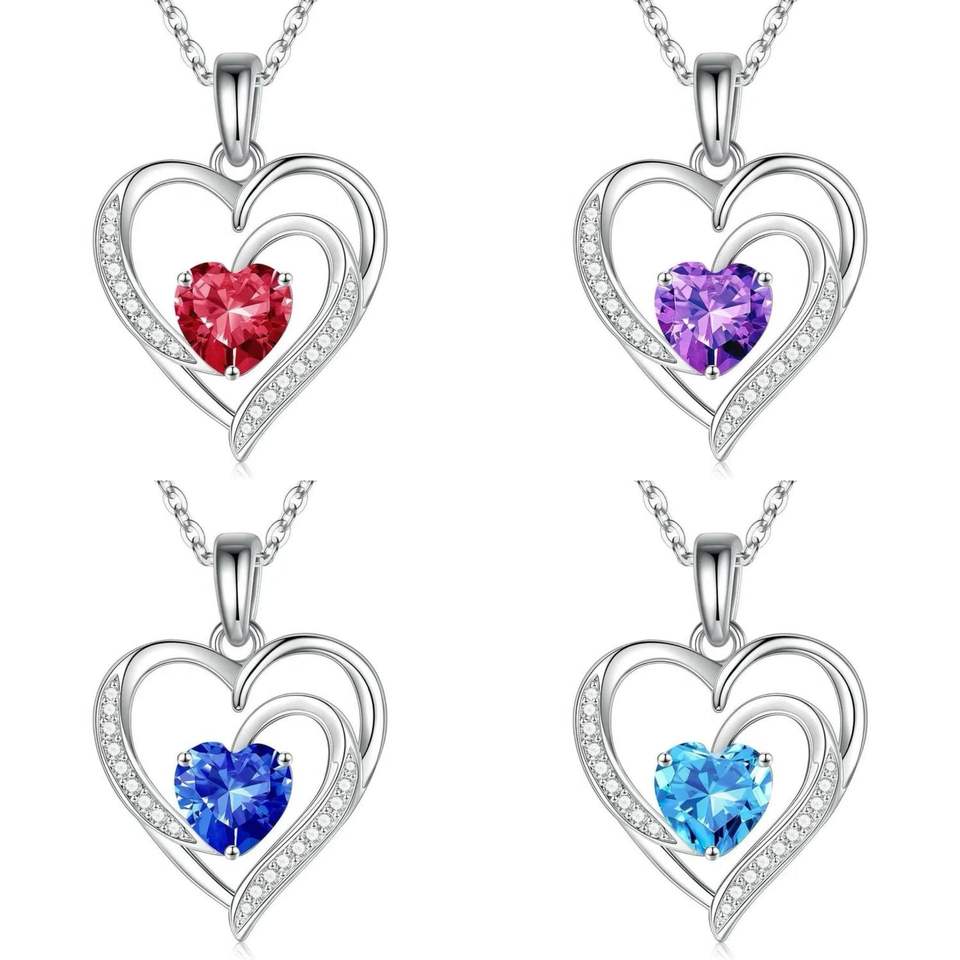 S925 Sterling Silver Heart-Shaped Ocean Heart Full Zirconia Diamond Pendant Necklace Trendy Sparkling Fashion Jewelry for Women
