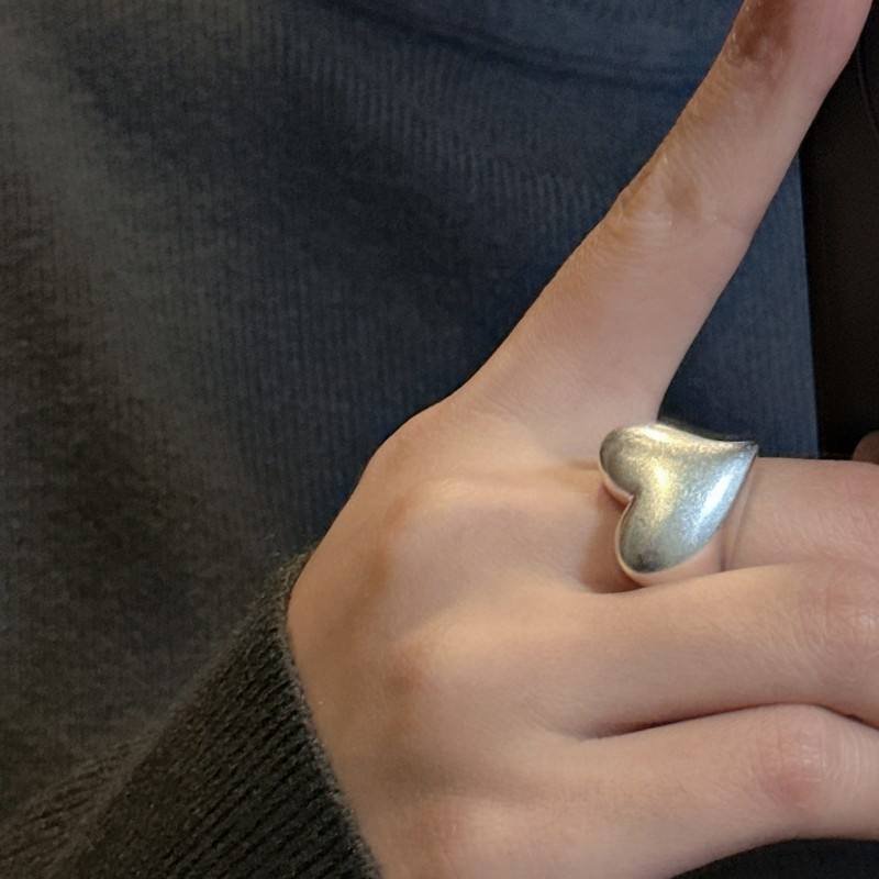 S925 Sterling Silver INS Style Ring Korean Version Frosted Love Ring with Niche Design Fashionable Heavy Industry Simple Elegant