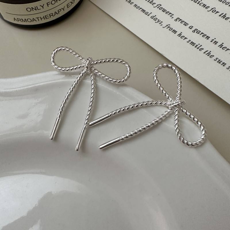 S925 Sterling Silver Korean Style Bow Earrings Stylish INS Blogger Inspired Niche Design Fashionable Korean Version Jewelry