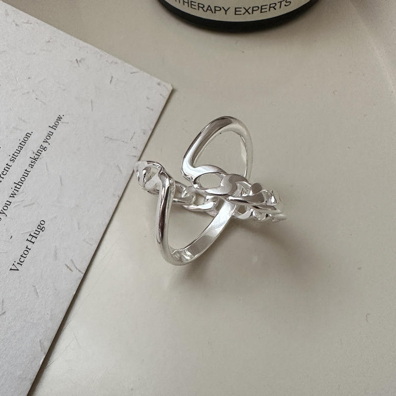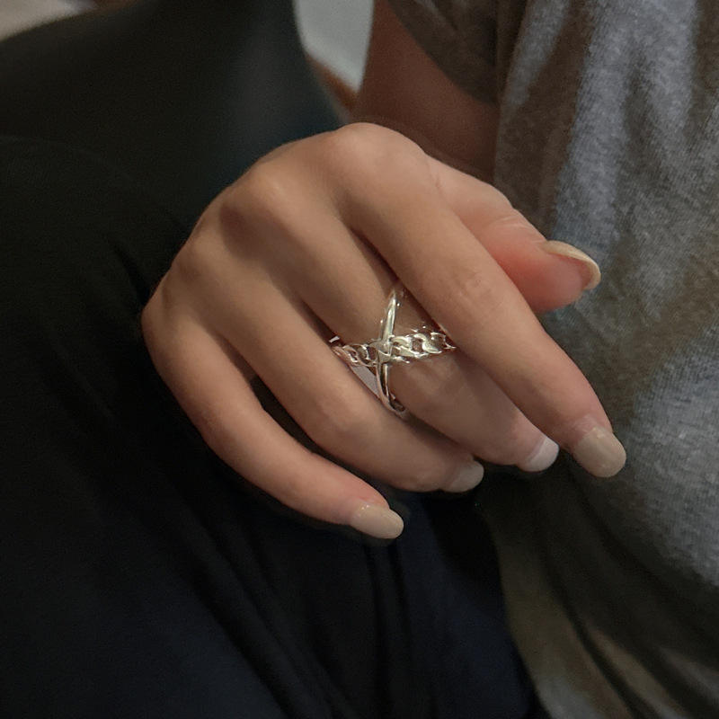 S925 Sterling Silver Korean Style Double Cross Ring Geometric Texture Simple Fashion Design for Wholesale