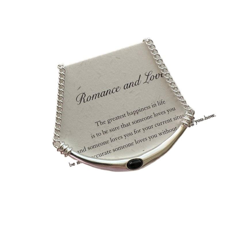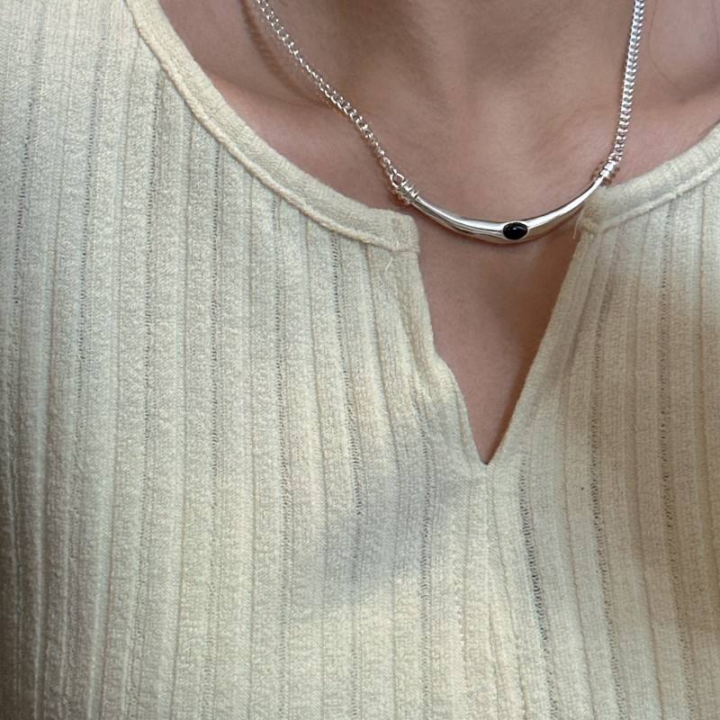 S925 Sterling Silver Korean Style Fashion Pendant Necklace Black Agate Smile Design Polished Adjustable-Length Clavicle Chain