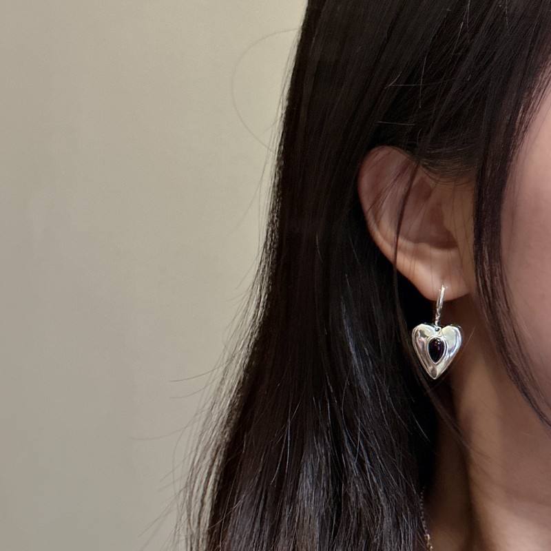 S925 Sterling Silver Korean Style Heart-Shaped Earrings Black Agate Niche Design Love Collection Fashion Piercing Jewelry