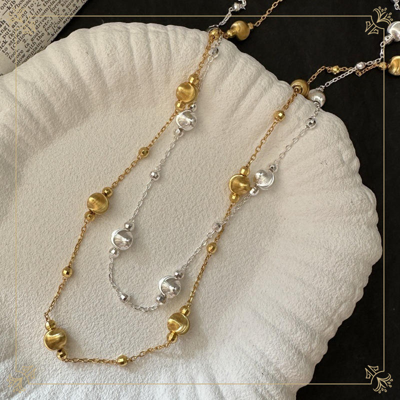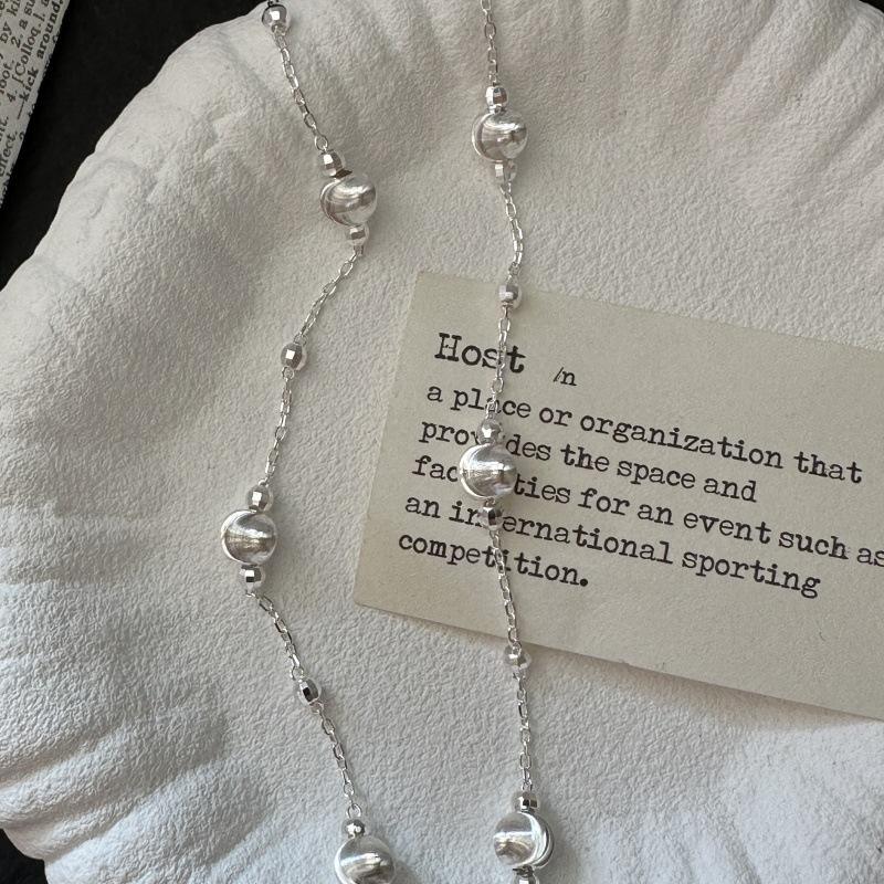S925 Sterling Silver Korean Style Retro Clavicle Chain Fine Beaded Necklaces Cat's Eye Design Silver/Gold Colors Women's Simple