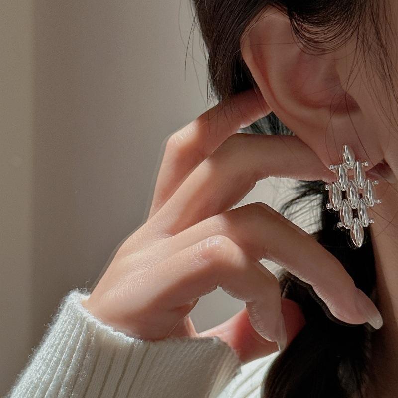 S925 Sterling Silver Korean Style Rice Bead Earrings Simple Fashionable Personality Design with Braids Elegant and Stylish