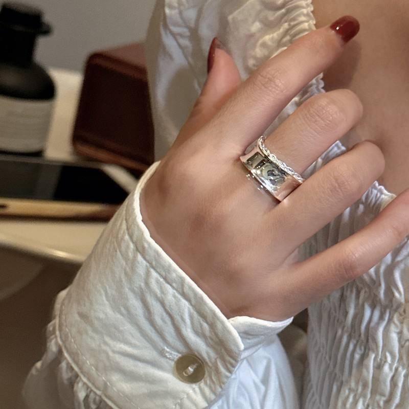 S925 Sterling Silver Korean Style Ring with Lace Fashionable Texture Princess Cut Diamond Simple Design Wholesale