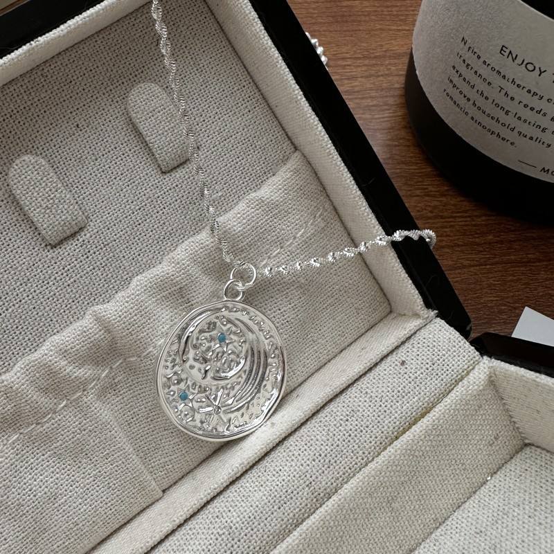 S925 Sterling Silver Korean Style Starry Sky Glaze Pendant Necklace Simple Clavicle Chain with Niche Design Wholesale