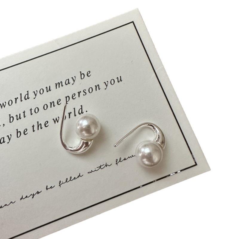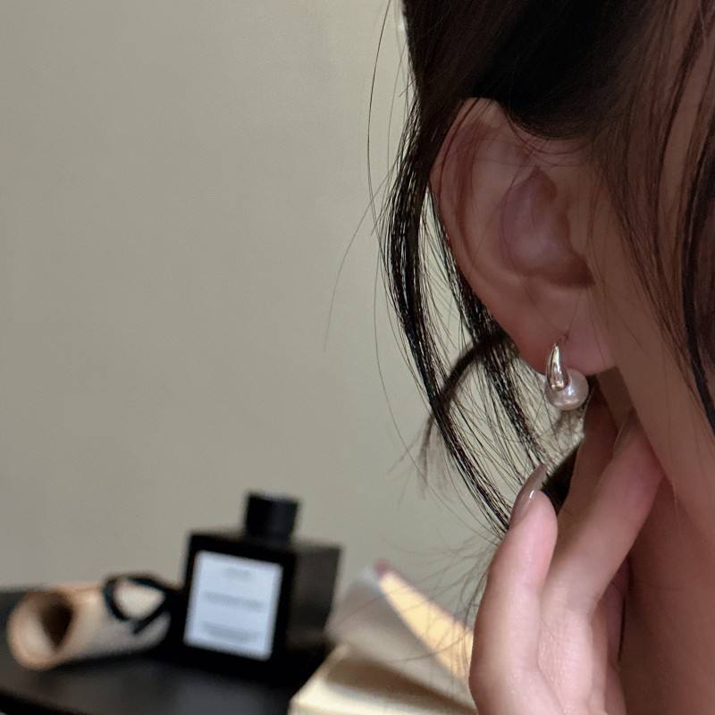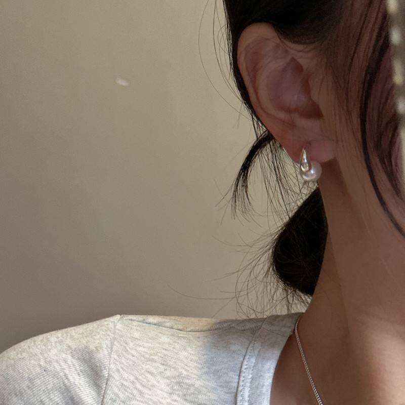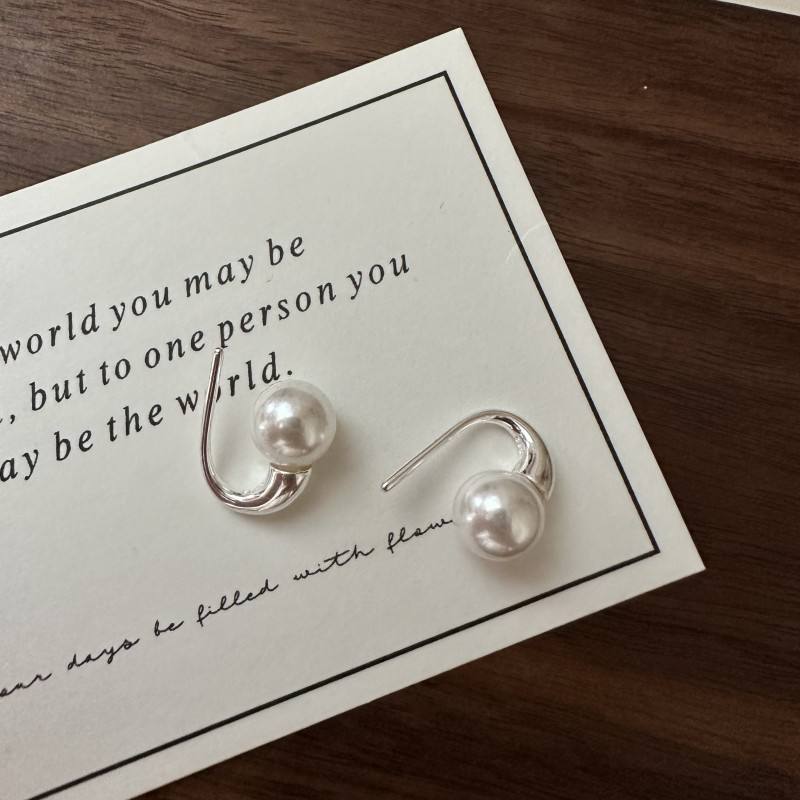 S925 Sterling Silver Korean Version Niche Design Fashion Pearl Earrings Simple Basic Classic Elegant Style