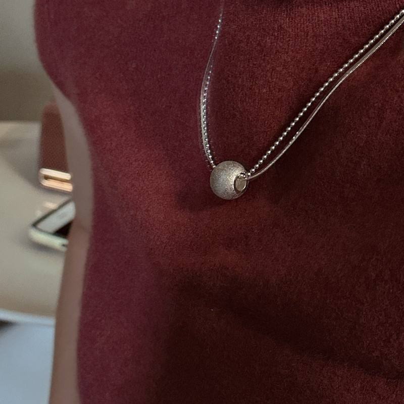 S925 Sterling Silver Korean Version INS Style Fashion Pendant Necklaces Small Brushed Ball Double Blade for Autumn Winter