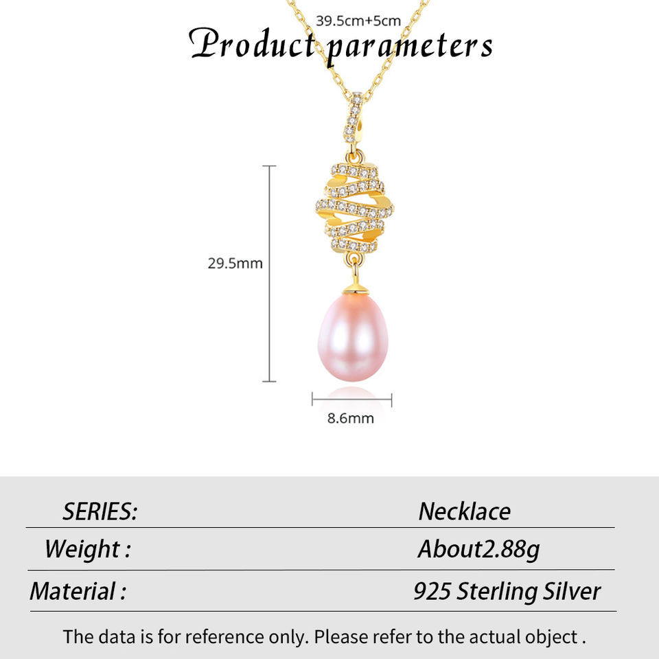 S925 Sterling Silver Natural Freshwater Pearl Twisted Pendant Necklace with Zirconia for Women Wholesale Jewelry