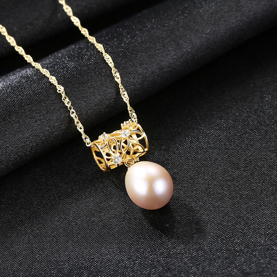 S925 Sterling Silver Necklace with Natural Freshwater Pearl and 3A Zirconia Fashion Jewelry with Openwork Design