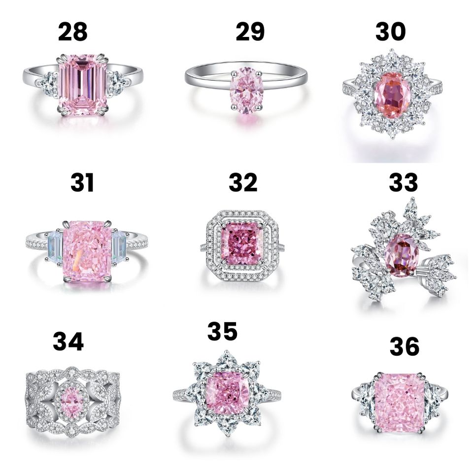 S925 Sterling Silver Radiant Cut Pink ICICLE Cubic Zirconia Rings Colorful Gemstone Wedding and Engagement Ring