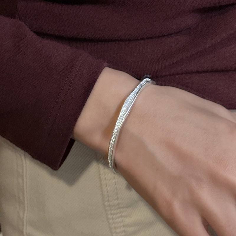 S925 Sterling Silver Retro INS Style Bracelet Korean Version Niche Design with Frosted Irregular Texture Fine String Bracelet