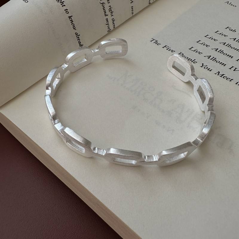 S925 Sterling Silver Retro INS Style Fashion Bracelet Korean Version Niche Design with Brushed Square Wholesale Cuff Bracelets