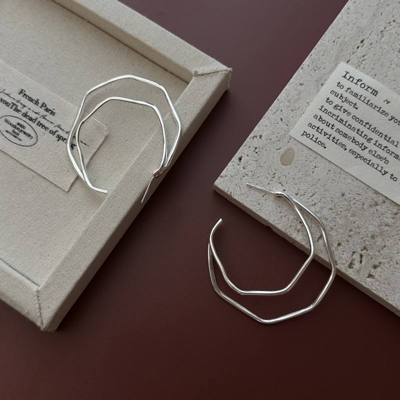 S925 Sterling Silver Retro Large Earrings Korean Style Niche Design Simple Fashionable Accessory