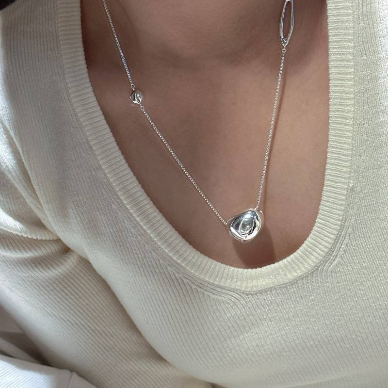 S925 Sterling Silver Retro Simple Fashion Bean Necklace Korean Niche Design Long Sweater Chain Wholesale Layered Necklaces