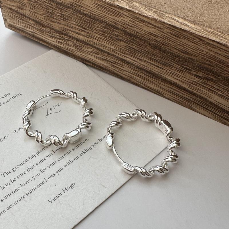 S925 Sterling Silver Retro Simple Wave Ear Buckle Korean Style Fashionable Cuff Earrings Niche Design Jewelry