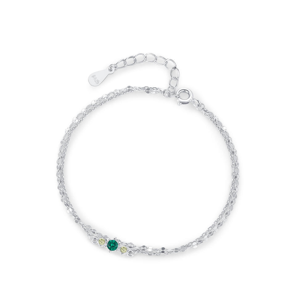 S925 Sterling Silver Round Cut Zircon and Oysterstone Double Chain Bracelet, Exclusive for Women Customizable copper version