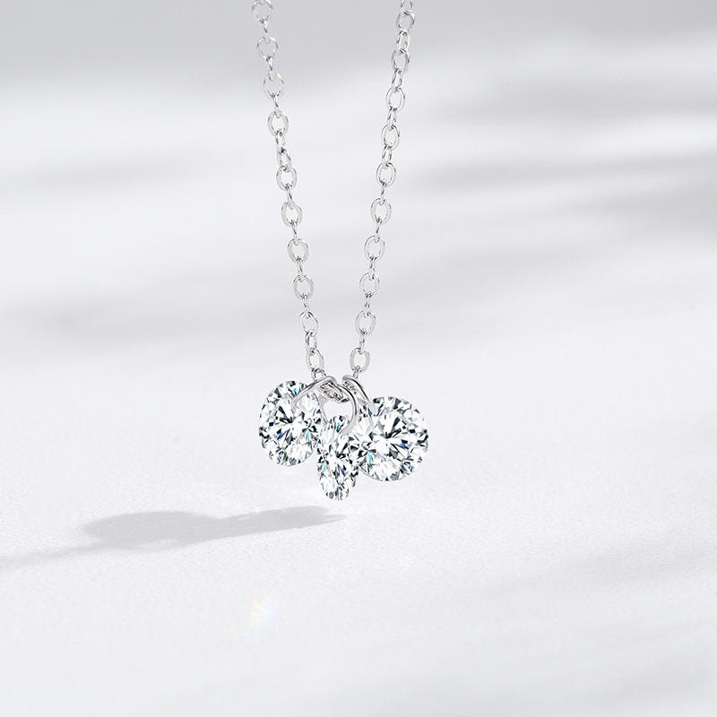 S925 Sterling Silver Round Cut Zirconia Super Sparkling Pendant Necklace Womens Anniversary Gift