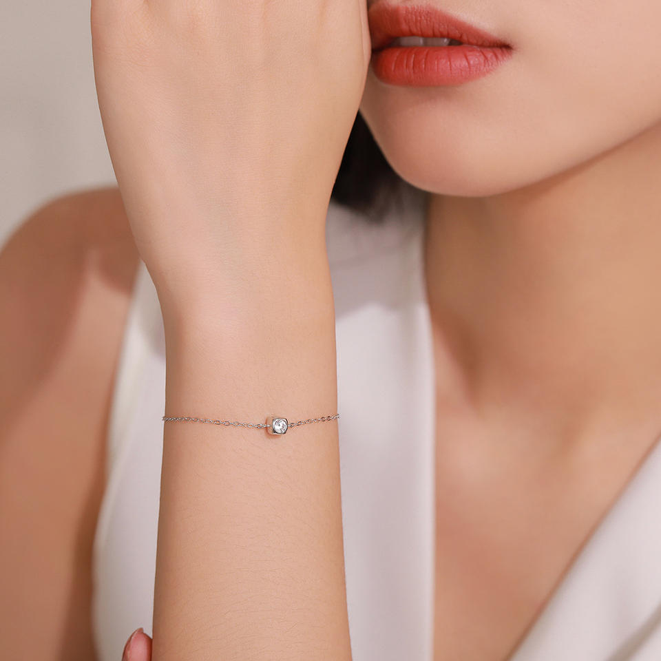 S925 Sterling Silver Round Cut Zirconia Simple Square Chain Bracelet, Exclusive for Women Customizable copper version