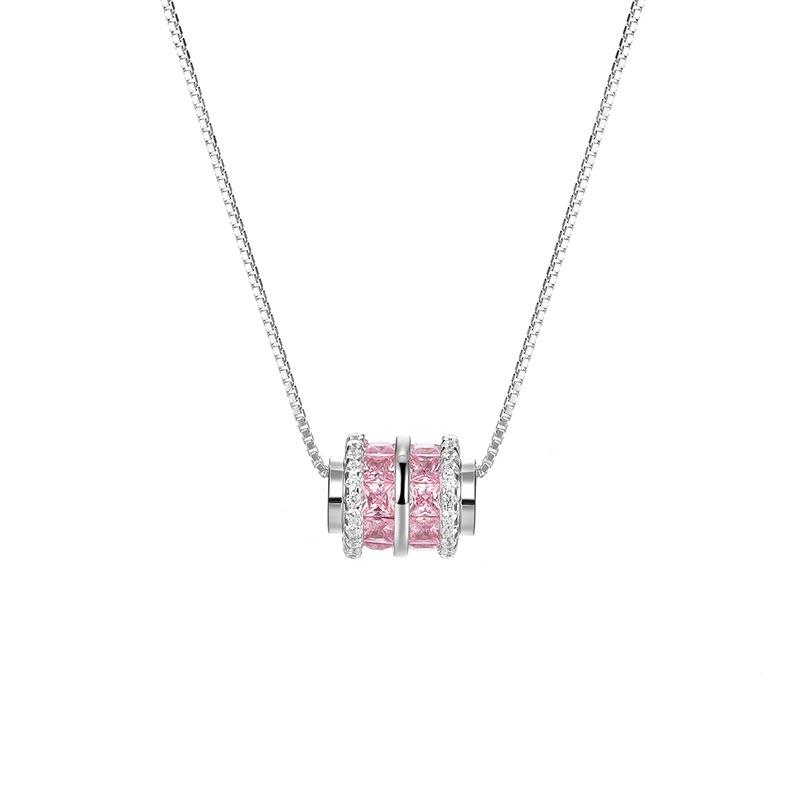 S925 Sterling Silver Small Waist Pendant Necklace with Pink Diamond Bucket Bead High-End Exquisite Ins Female Niche Design