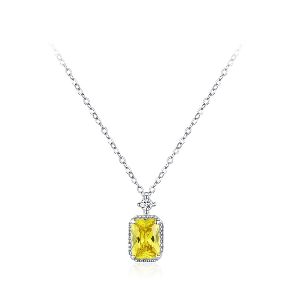 S925 Sterling Silver Square-Cut Lemon Yellow Zircon Pendant Necklace Womens Anniversary Gift