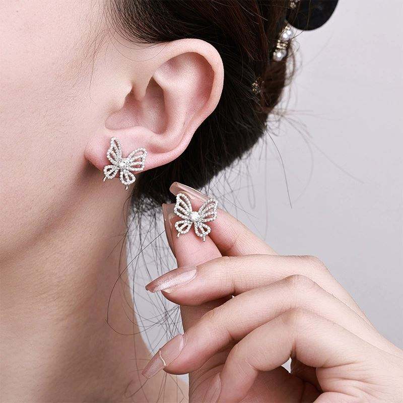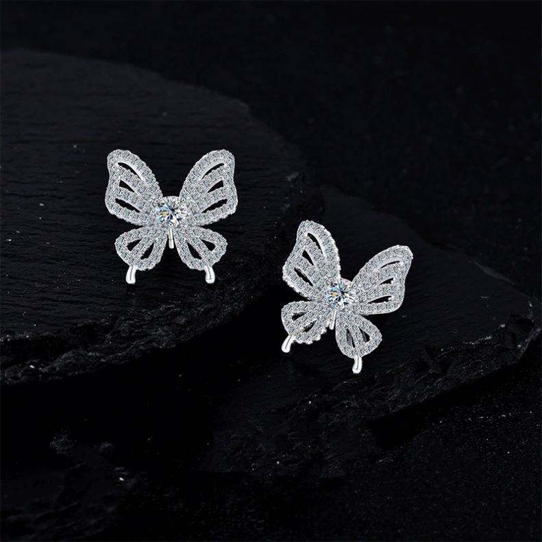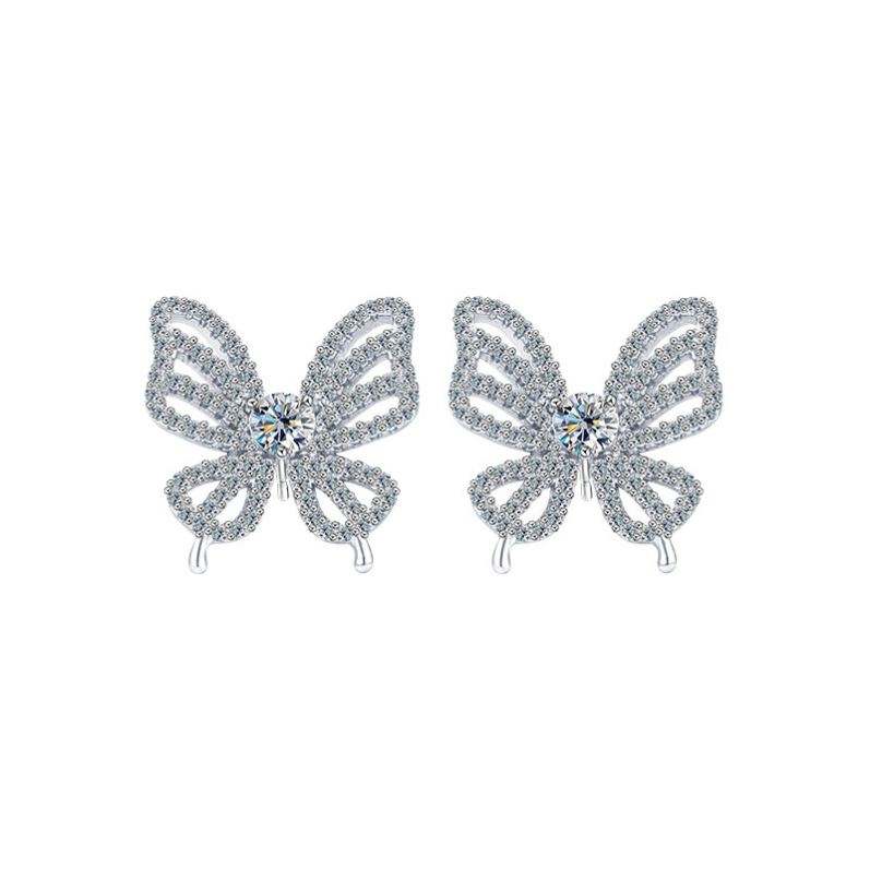 S925 Sterling Silver Stud butterfly Earrings Moissanite Earrings