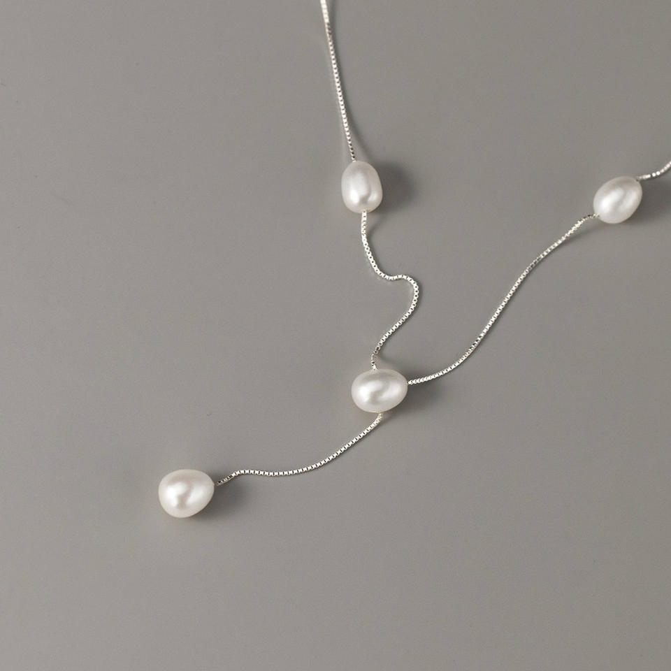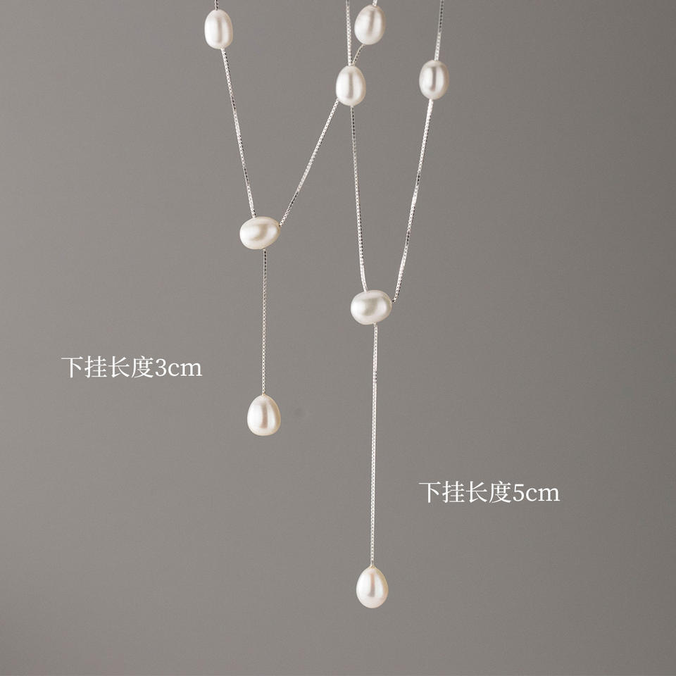 S925 Sterling Silver Tassel Pearl Necklace Freshwater Rice Grain Pearl Earrings Luxurious INS Style Fashionable Beaded Y01252