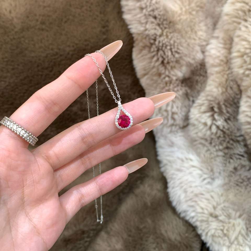 S925 Sterling Silver Water Droplet Sea Blue Diamond Pendant Necklace Japanese Style High-End Luxury Fine Jewelry Design