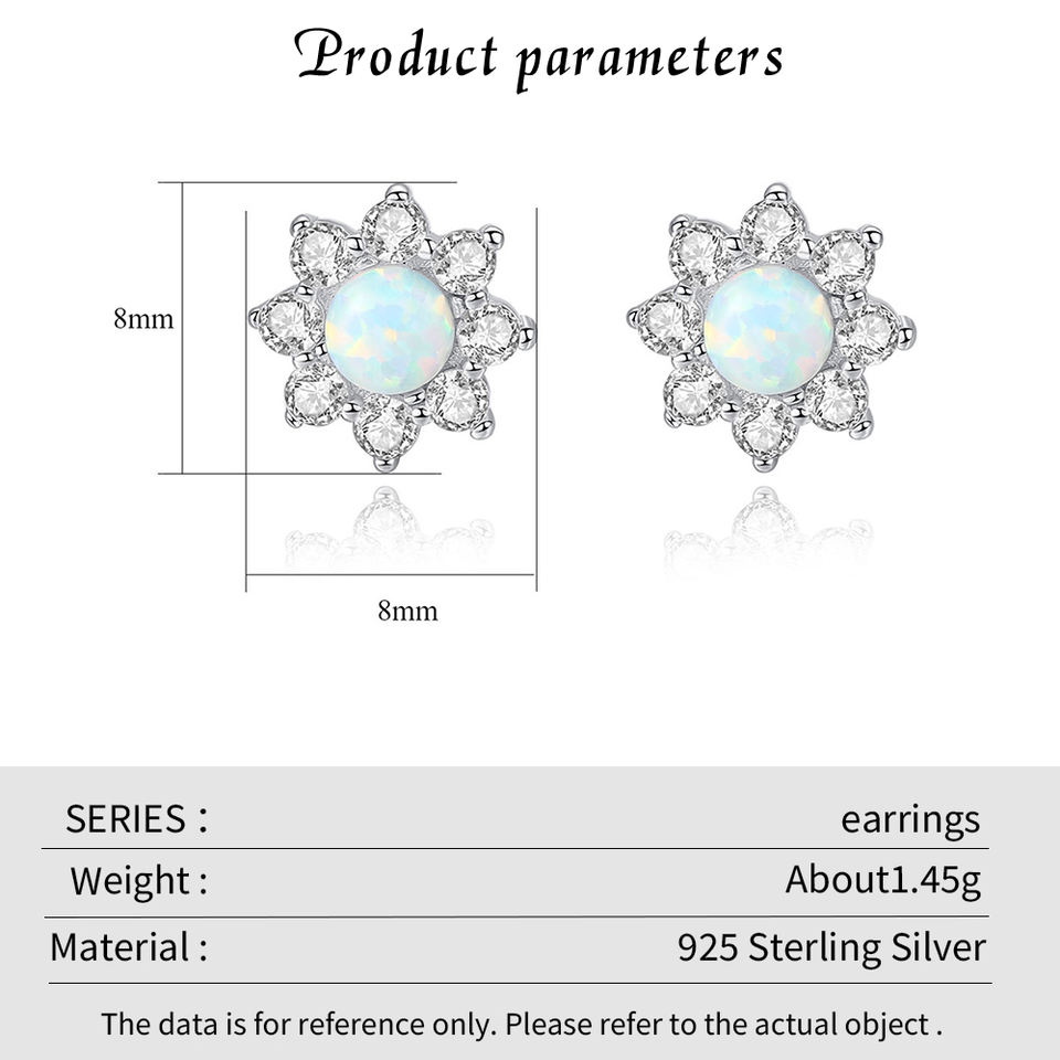 S925 Sterling Silver Women's Flower Shape Earrings CZ Cubic Zirconia White Blue Opal Stud Rhodium Plated Trendy Anniversary Gift