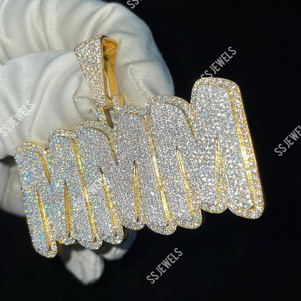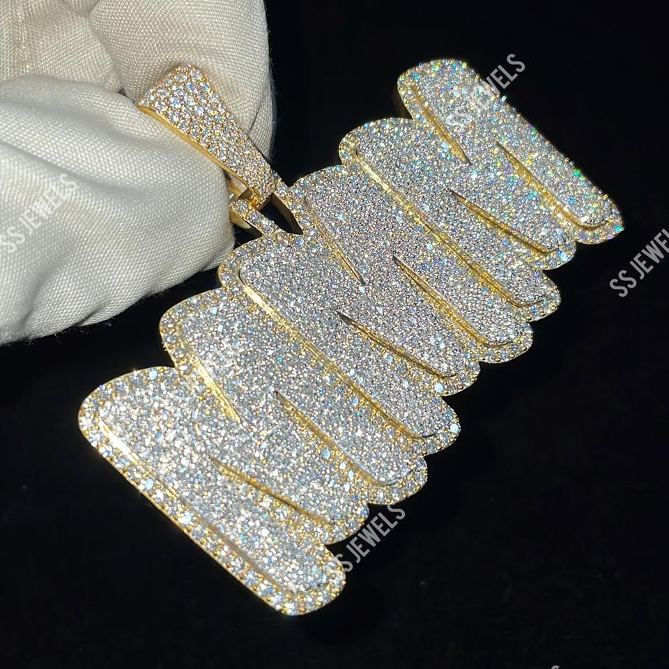 S925 VVS D Lab Grown Diamond Initial Name Pendant Trendy Style Custom Full Iced Out Letter Chain Rhodium Plated for Men & Women
