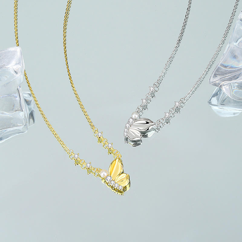 S925 Sterling Silver Natural Freshwater Pearl Butterfly Pendant Necklace High Quality Inlaid Zircon for Women