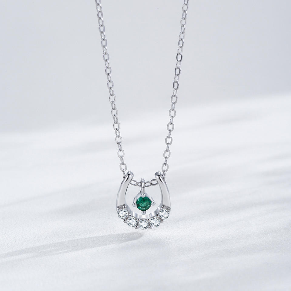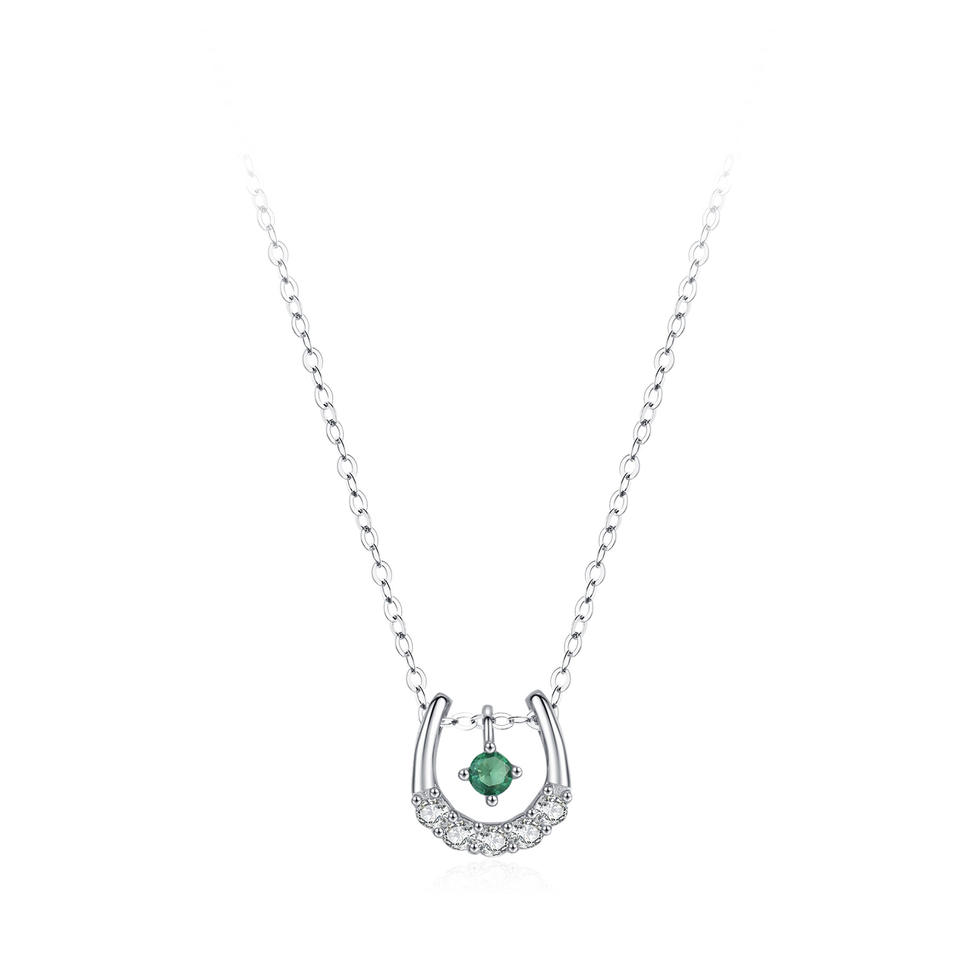 S925 sterling silver romantic exquisite round-cut horseshoe U- shaped pendant necklace a gift for her
