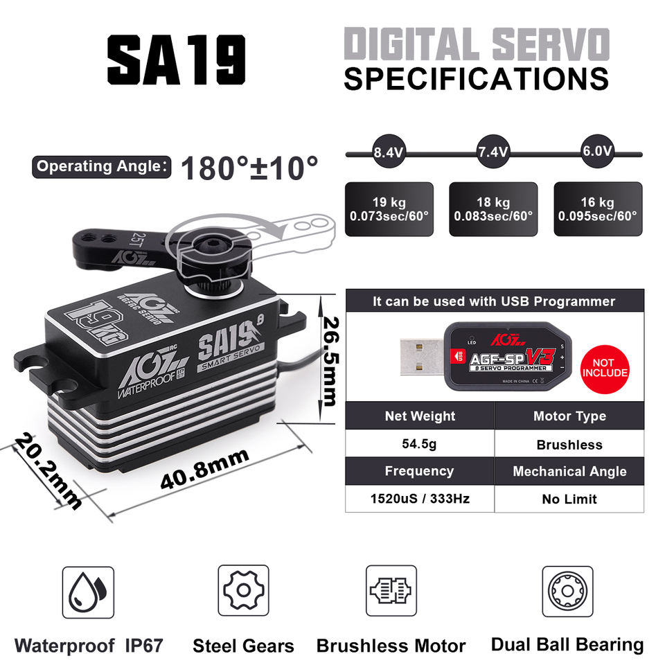 SA19 Case Metal Gear 19kg 0.073sec Digital Low Profile Smart Programmable Brushless Waterproof 1:10 Scale RC Parts
