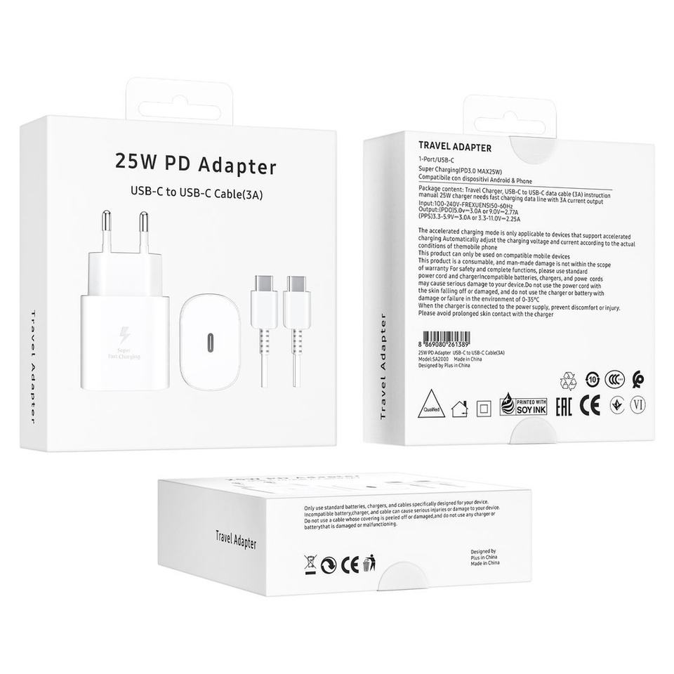 SA2000 PD Charger with USB-C to USB-C Cable 25W 3A White - Tech Accessories