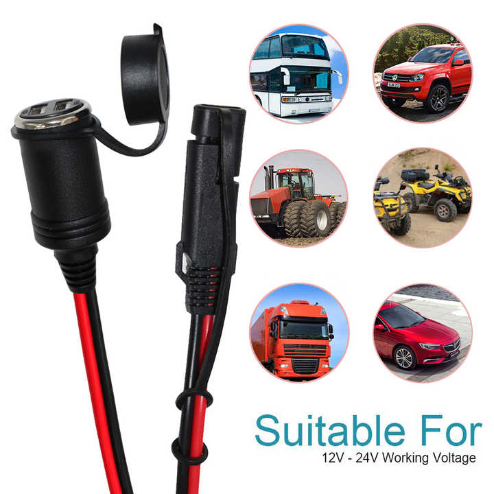 SAE Motorcycle Charger USB, Waterproof Dual Port Fast Charging Cable, cigarette lighter Quick Connect Power Cable