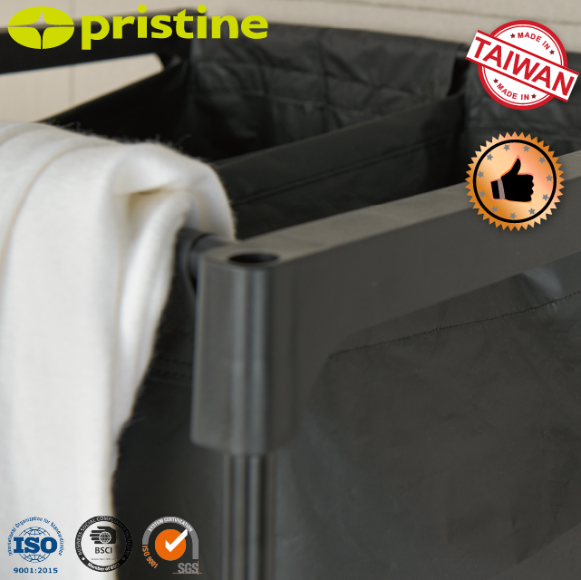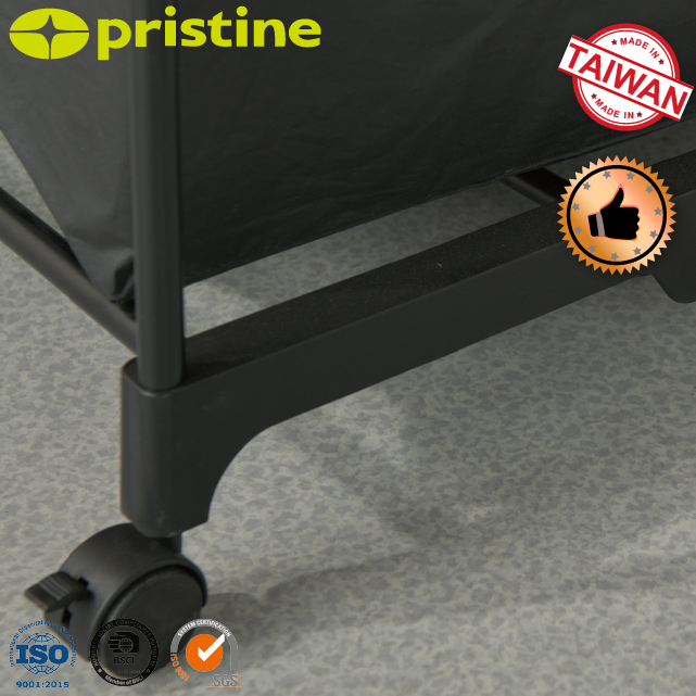 Wholesale New MIT Taiwan Double Household Storage Metal Laundry Basket Cart 4 PEVA Bags Fabric Cloth Use Clothing Organizer