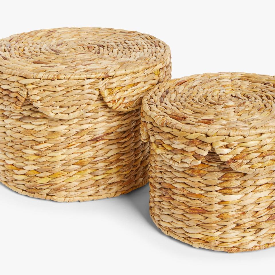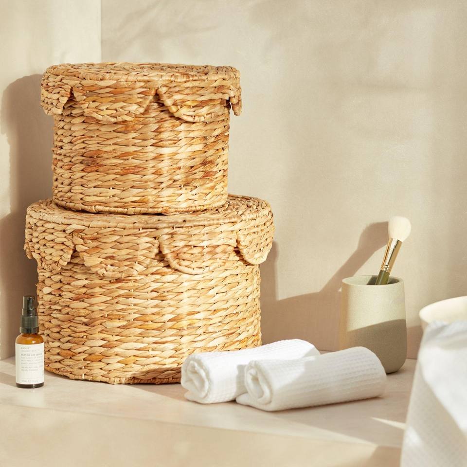 SALE up 30% Set of 2 Scallop Water Hyacinth Storage Boxes with Lid Eco-friendly Sustainable for Home Kitchen Livingroom Bedroom