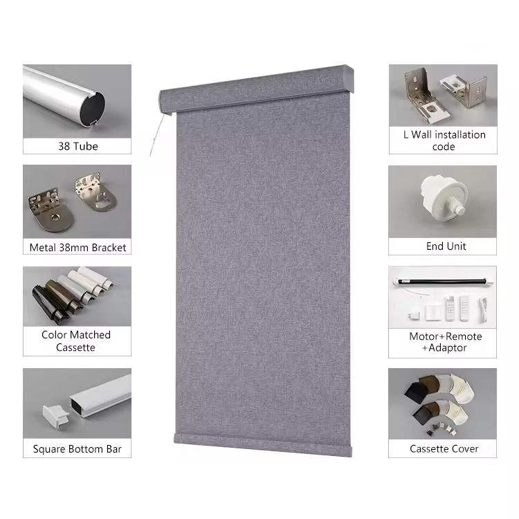 Automatic Grey Roller Blind 135x180 cm Built-In Blackout Horizontal Vertical for Office Hotel Use Factory Direct Supply